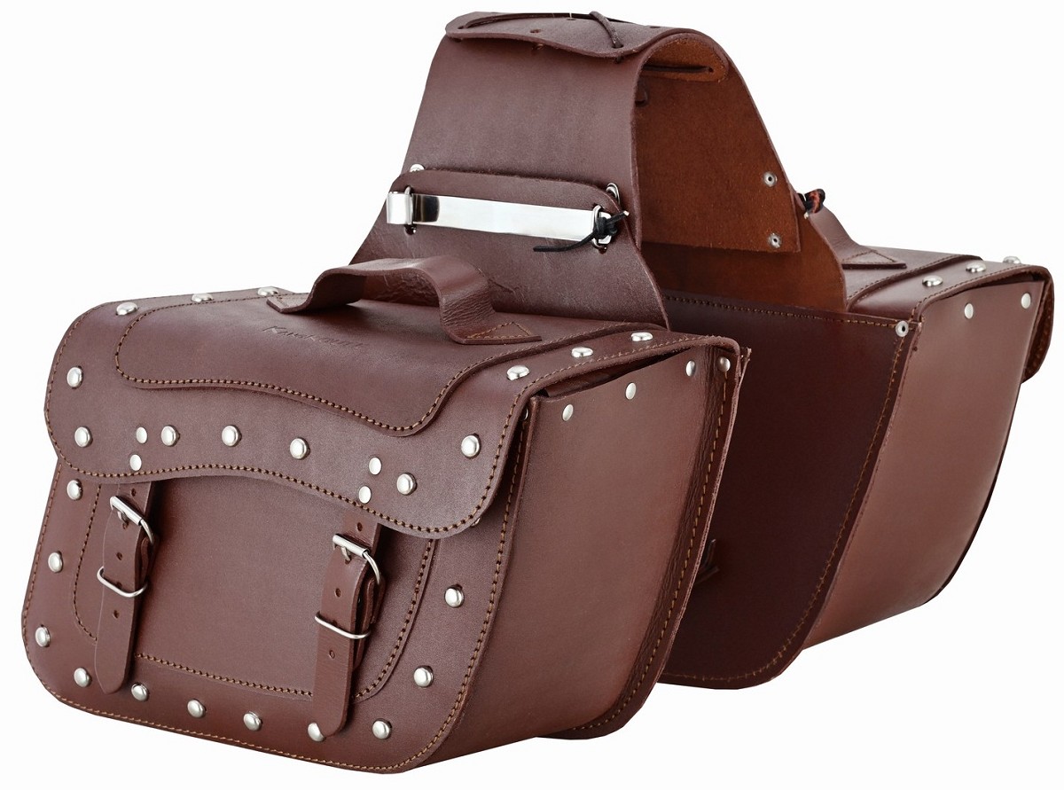 JUEGO DE ALFORJAS RÍGIDAS DE CUERO 3-4MM, PARA MOTO CUSTOM Y HARLEY BIKERS WILD WEST 2 X 24 LITROS