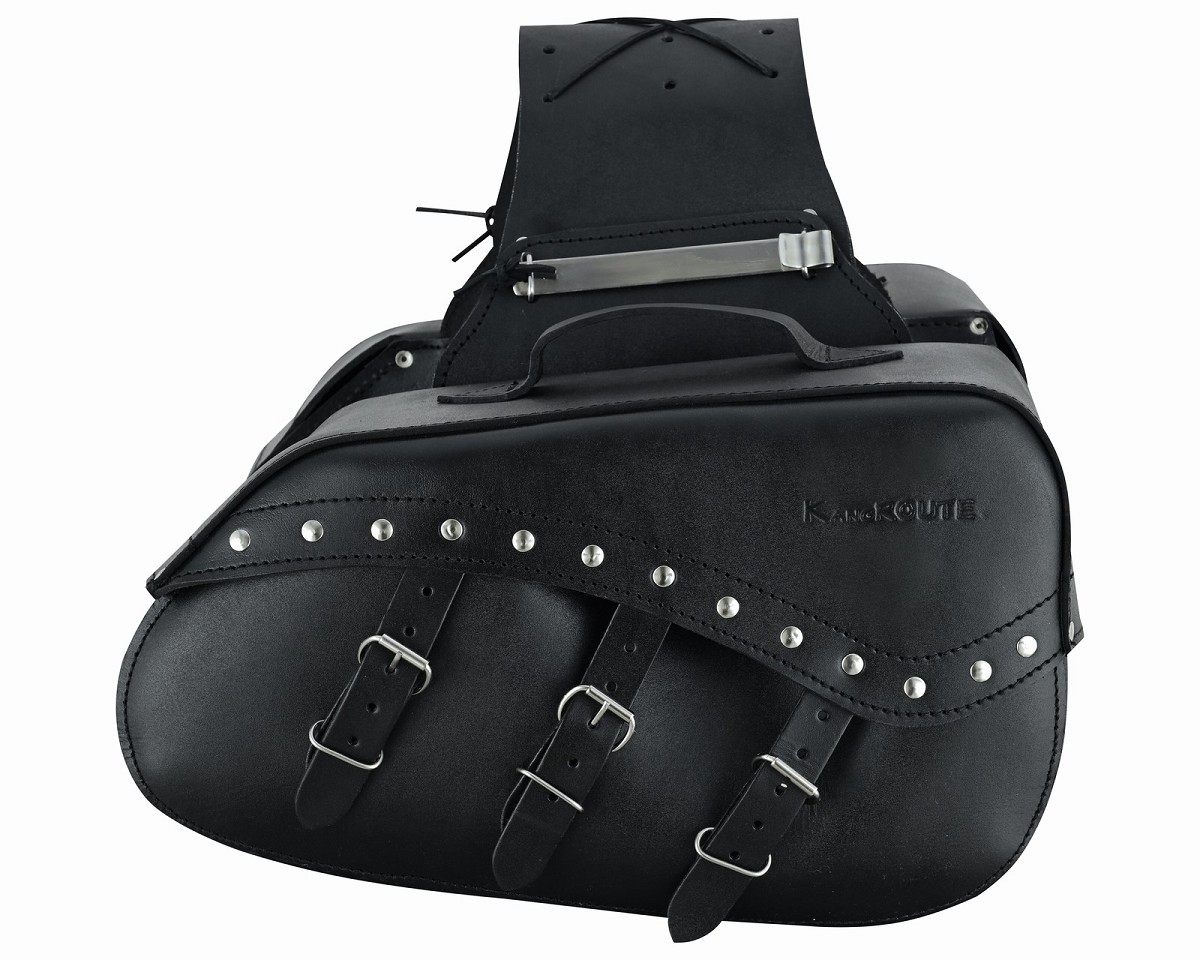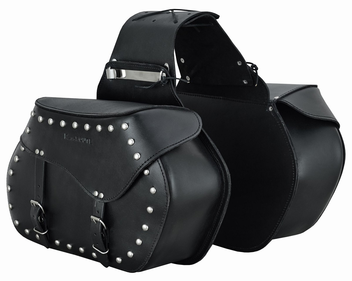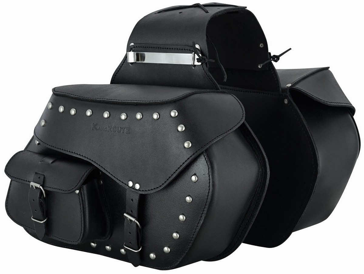 JUEGO DE ALFORJAS RÍGIDAS DE CUERO 3-4MM, PARA MOTO CUSTOM Y HARLEY BIKERS VAGABOND NEGROS 2 X 24 LITROS GM251