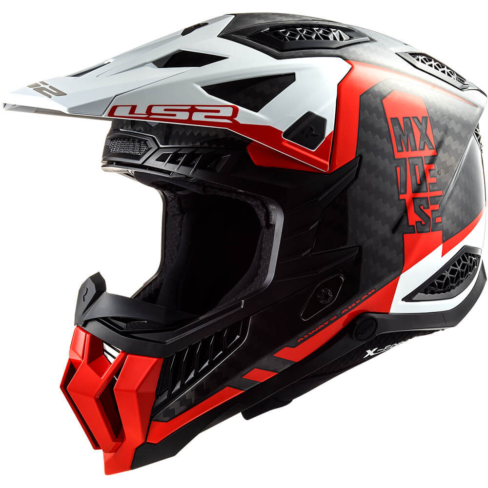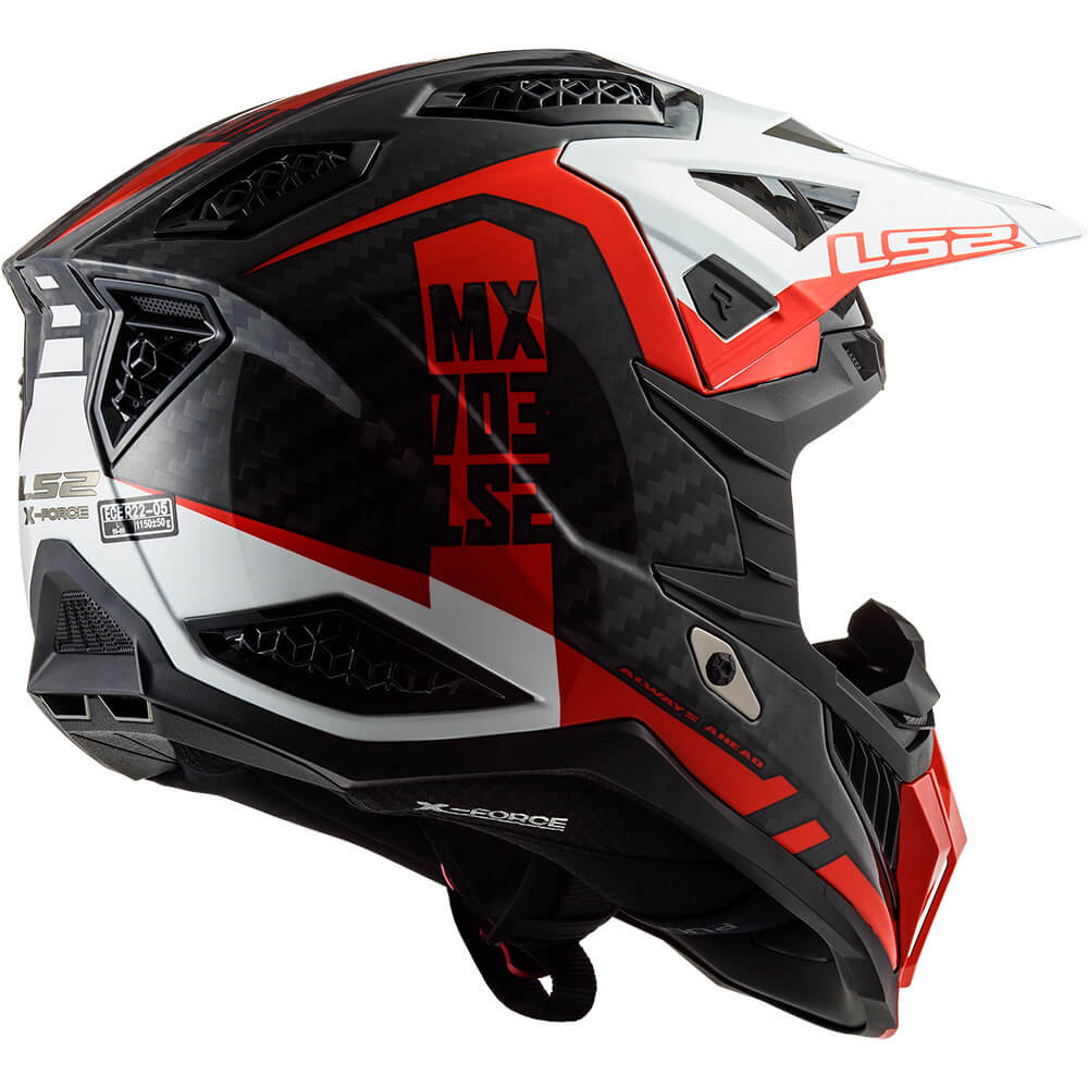 CASCO DE MOTO CROSS LS2 -MX703 C X-FORCE VICTORY RED WHITE-ECE 22.06 FIBRA DE CARBONO NEGRO ROJO BLANCO