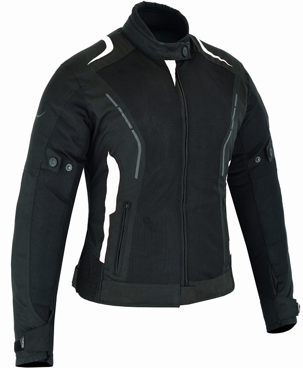 CHAQUETA DE VERANO DIANA NEGRA/BLANCO PARA CHICAS CON PROTECCIONES C.E. Y FORRO IMPERMEABLE EXTRAIBLE