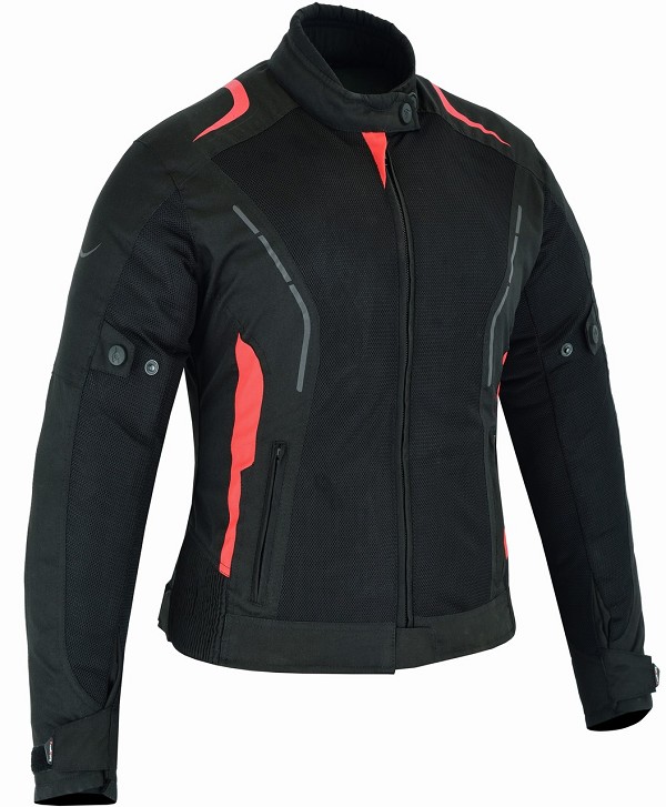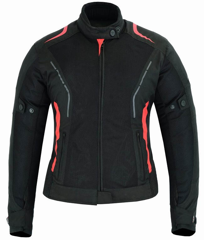 CHAQUETA DE VERANO DIANA NEGRA/ROJA PARA CHICAS CON PROTECCIONES C.E. Y FORRO IMPERMEABLE EXTRAIBLE