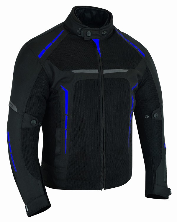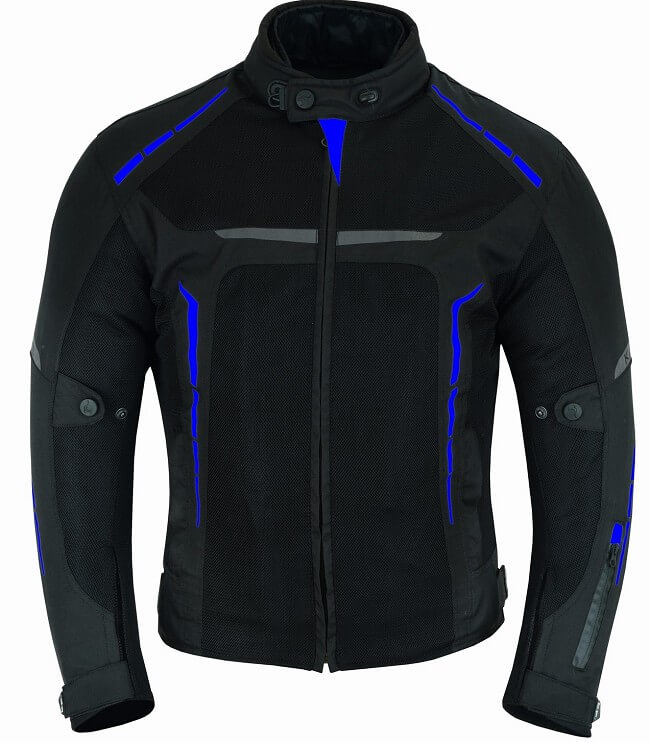 CHAQUETA DE CORDURA PARA VERANO PERFORADA CE/PROTECCIONES CON FORRO DESMONTABLE VULCANO AZUL/NEGRO
