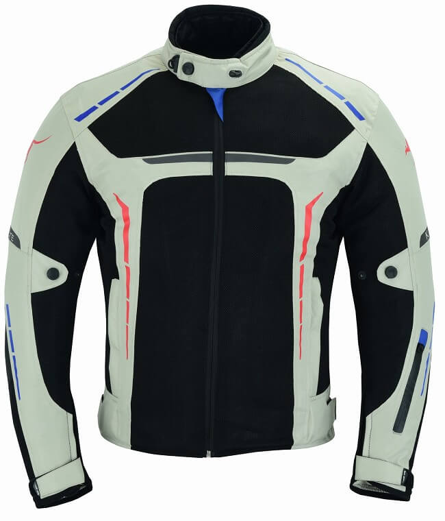 CHAQUETA DE CORDURA PARA VERANO PERFORADA CE/PROTECCIONES CON FORRO DESMONTABLE VULCANO PLATA/BLANCO/ROJO/AZUL