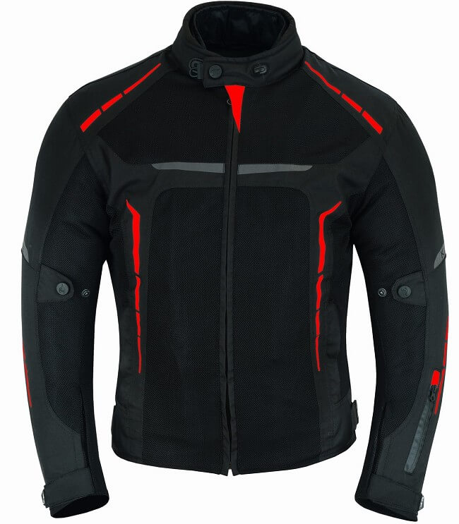 CHAQUETA DE CORDURA PARA VERANO PERFORADA CE/PROTECCIONES CON FORRO DESMONTABLE VULCANO ROJO/NEGRO