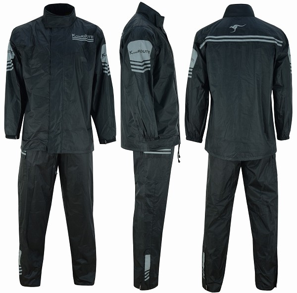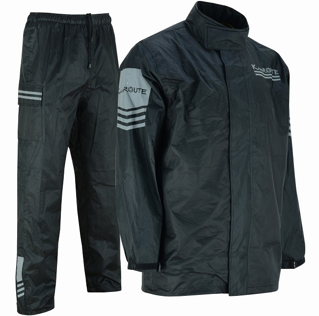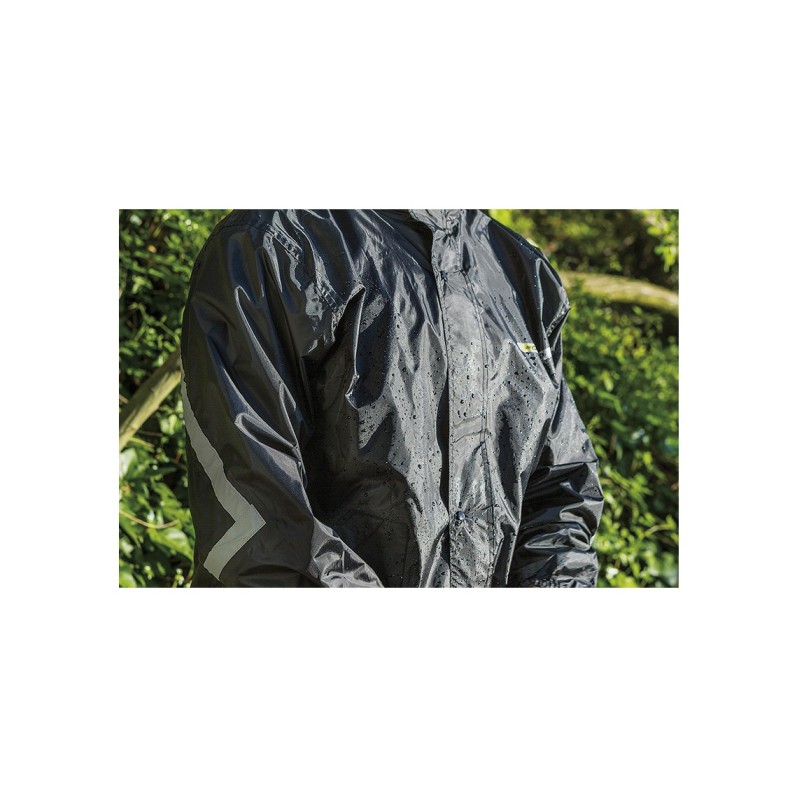 TRAJE DE LLUVIA MONSOON NEGRO CHAQUETA Y PANTALON CHUBASQUERO IMPERMEABLE DE MOTO EN DOS PIEZAS