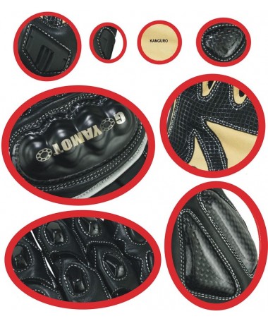 GUANTES DE PIEL K2 NEGRO CON PROTECCIONES DE FIBRA DE CARBONO PARA MOTORACING