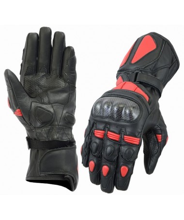 GUANTES DE PIEL CON PROTECCIONES DE FIBRA DE CARBONO PARA MOTORACING K2 NEGRO ROJO
