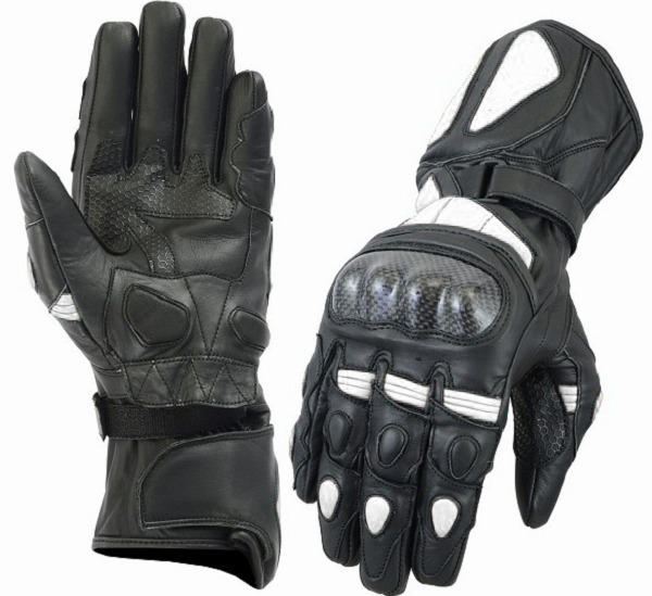 GUANTES DE PIEL K2 NEGRO BLANCO CON PROTECCIONES DE FIBRA DE CARBONO PARA MOTORACING