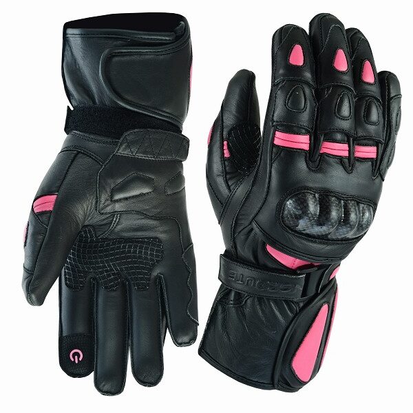 GUANTES DE PIEL K2 NEGRO BFUCSIA ROSA CON PROTECCIONES DE FIBRA DE CARBONO PARA MOTORACING