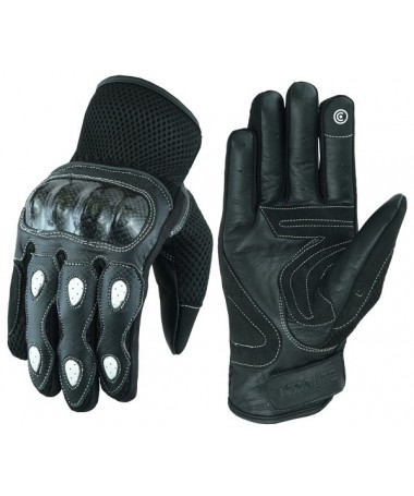 GUANTES DE VERANO PARA MOTORISTAS EN PIEL, MALLA Y FIBRA DE CARBONO 207 N/BLANCO
