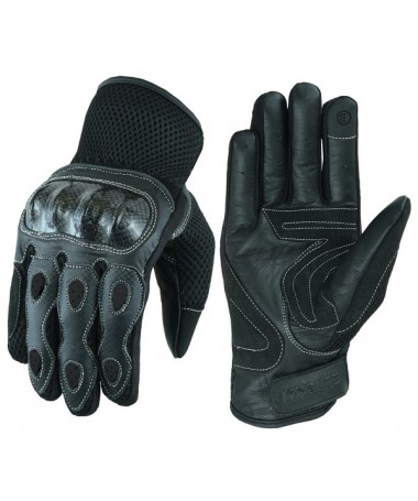 GUANTES DE VERANO PARA MOTORISTAS EN PIEL, MALLA Y FIBRA DE CARBONO 207 NEGRO