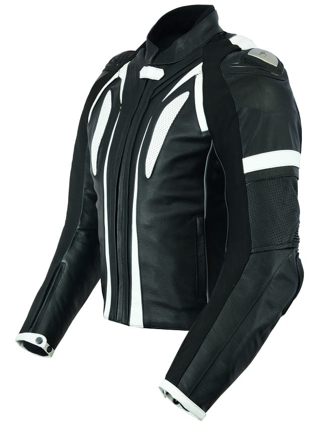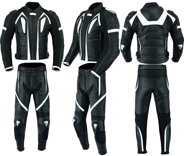 MONO DE CUERO DE DOS PIEZAS CON PROTECCIONES TPR Y TITANIO 166/151 NEGRO/BLANCO