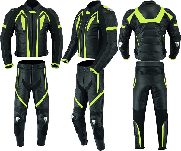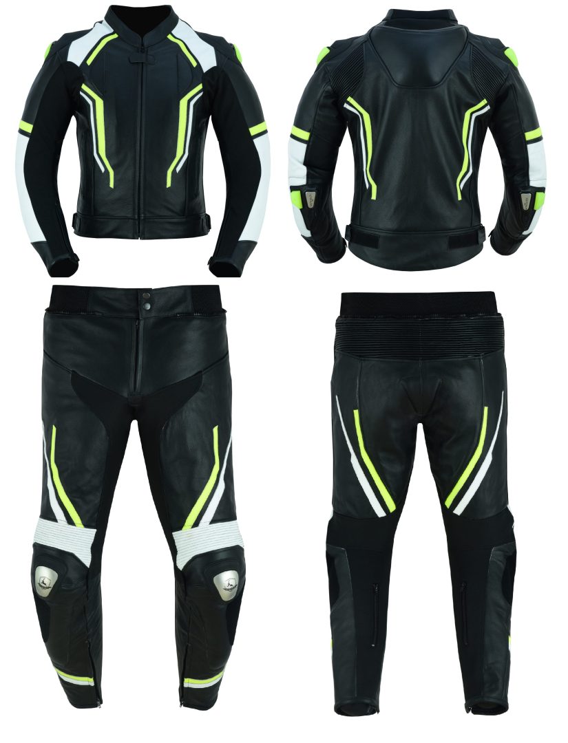 MONO DE CUERO DE DOS PIEZAS CON PROTECCIONES TPR Y TITANIO JF17C/JF17P NEGRO BLANCO AMARILLO FLUOR