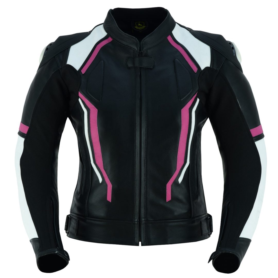 MONO DE CUERO DE DOS PIEZAS CON PROTECCIONES DE TITANIO PARA CHICAS JF 17 ROSA BLANCA NEGRA