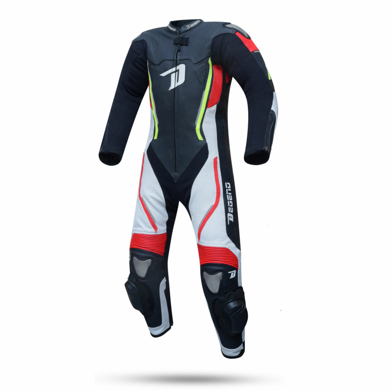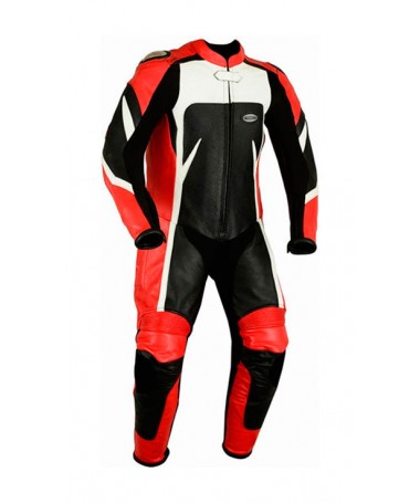 MONO DE CUERO UNA PIEZA ROJO/NEGRO/BLANCO CON PROTECCIONES DE TITANIO PARA NIÑOS