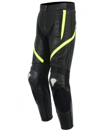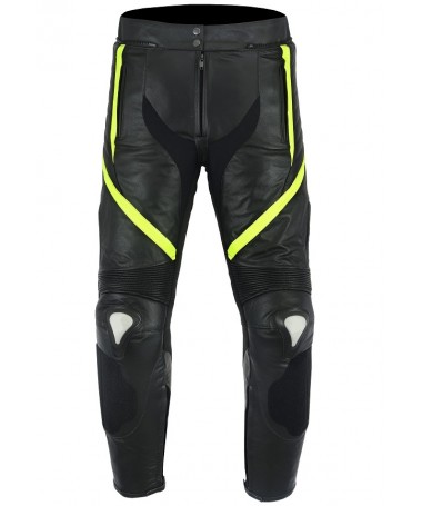 PANTALON DE CUERO PARA MOTORISTA CON PROTECCIONES DE TITANIO 151 N/FLUOR