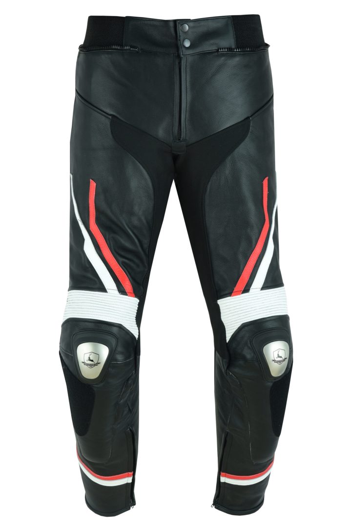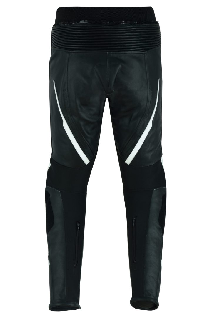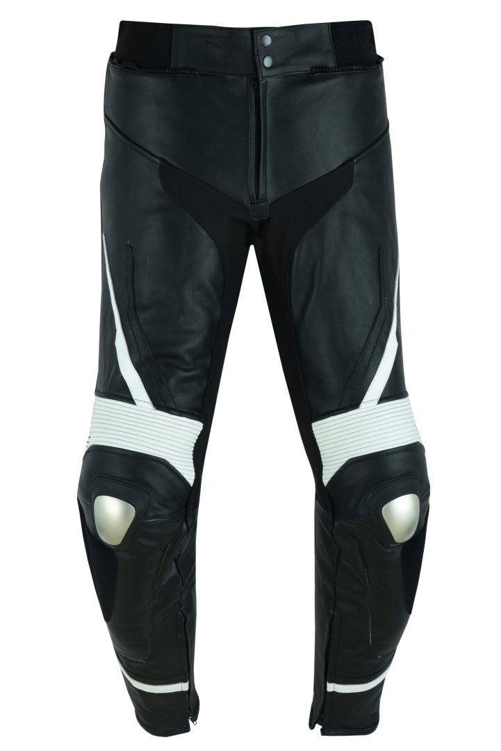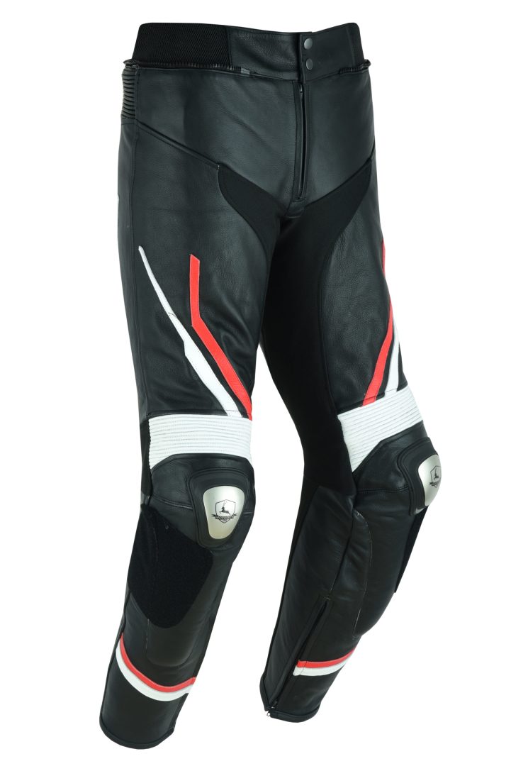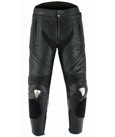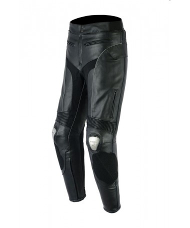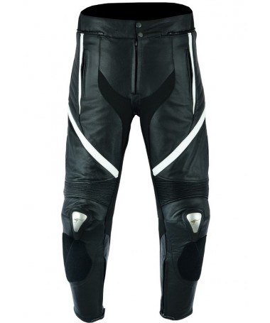 PANTALON DE CUERO PARA MOTORISTA CON PROTECCIONES DE TITANIO 151 N/BLANCO
