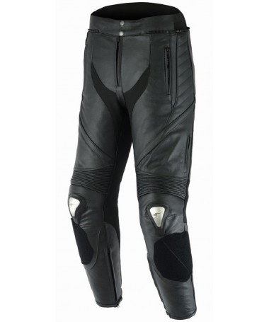 PANTALON DE CUERO PARA MOTORISTA CON PROTECCIONES DE TITANIO 151 NEGRO