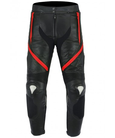 PANTALON DE CUERO PARA MOTORISTA CON PROTECCIONES DE TITANIO 151 N/ROJO