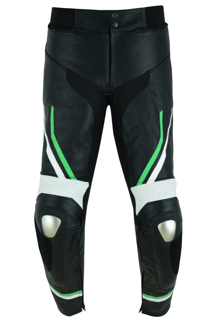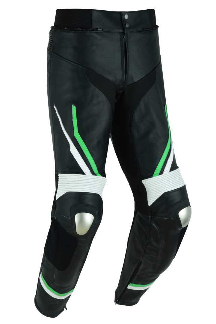 PANTALON DE CUERO PARA MOTORISTA CON PROTECCIONES DE TITANIO JF 17 P -VERDE