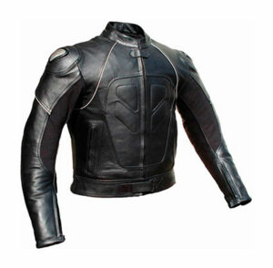 CHAQUETA DE CUERO PARA MOTO, CON PROTECTORES DE TITANIO 163 NEGRA
