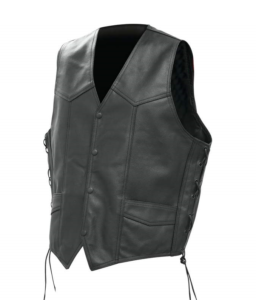 CHALECO DE CUERO CON CORDONES ESTILO CUSTOM 491 NEGRO