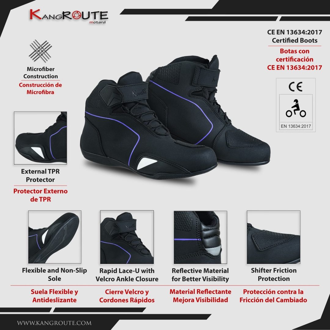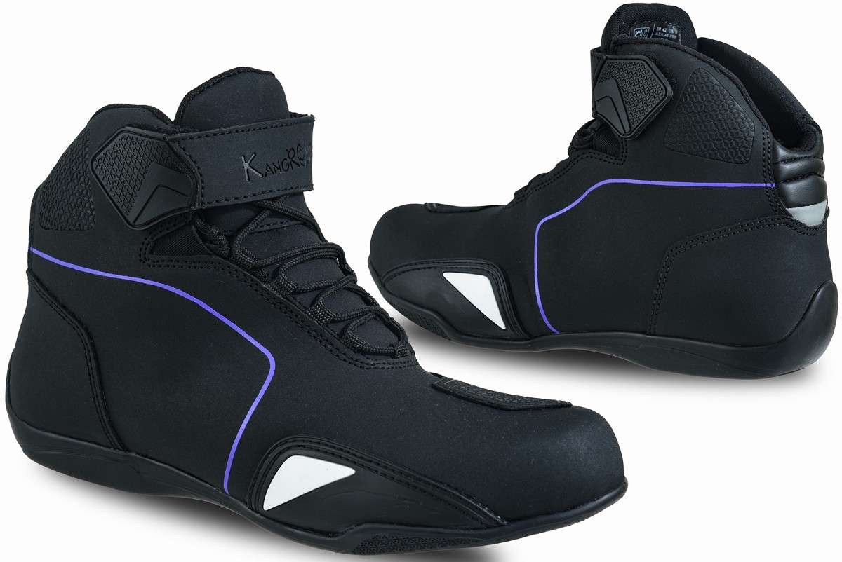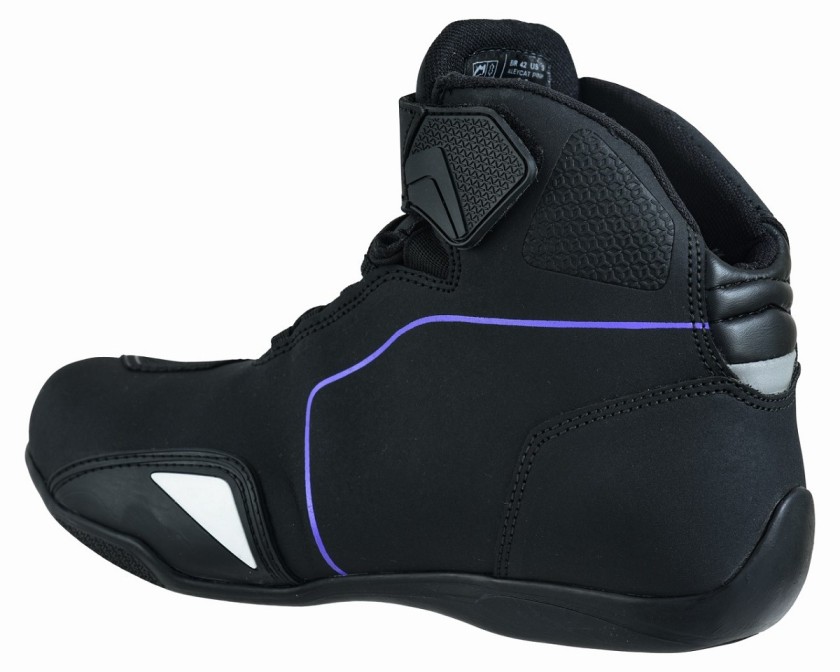 BOTAS DE MOTO ZAPATILLAS DE MOTO IMPERMEABLES Y TRANSPIRABLES CON HOMOLOGACIÓN CE ALLEYCAT LILA NEGRO