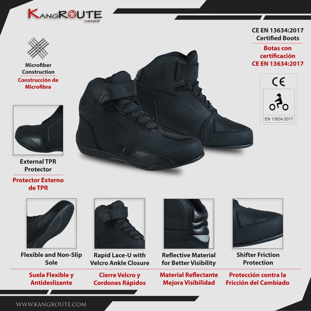 BOTAS DE MOTO ZAPATILLAS DE MOTO IMPERMEABLES Y TRANSPIRABLES CON HOMOLOGACIÓN CE ALLEYCAT NEGROS