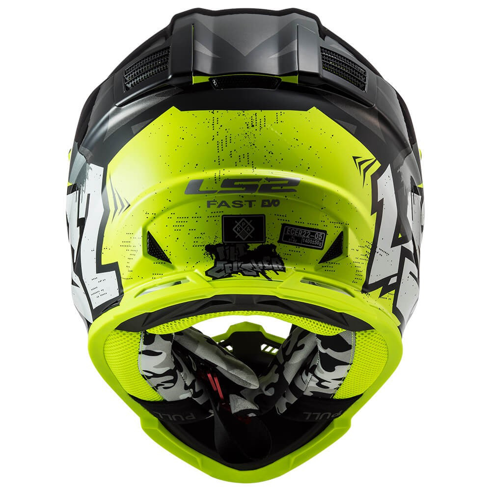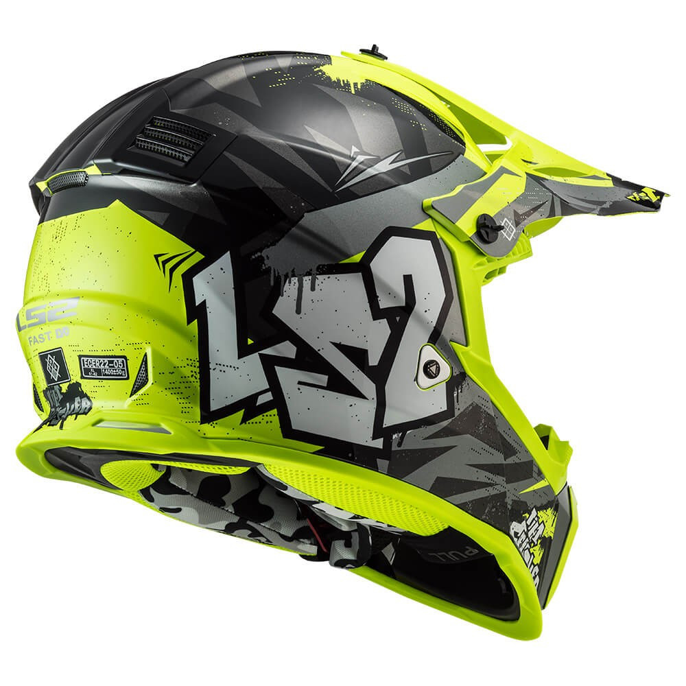 CASCO DE MOTO CROSS LS2 MX437 FAST EVO MINI CRUSHER BLACK YELLOW / NEGRO H-V AMARILLO ECE 22.06