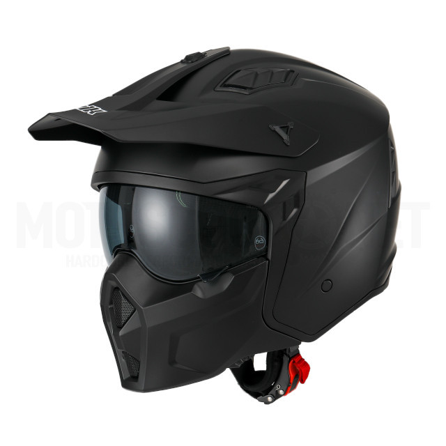 CASCO JET TIPO TRIAL UNIK PLUTON MASK DV CON GAFA DE SOLAR Y MASCARA NEGRO MATE ECE 22.06
