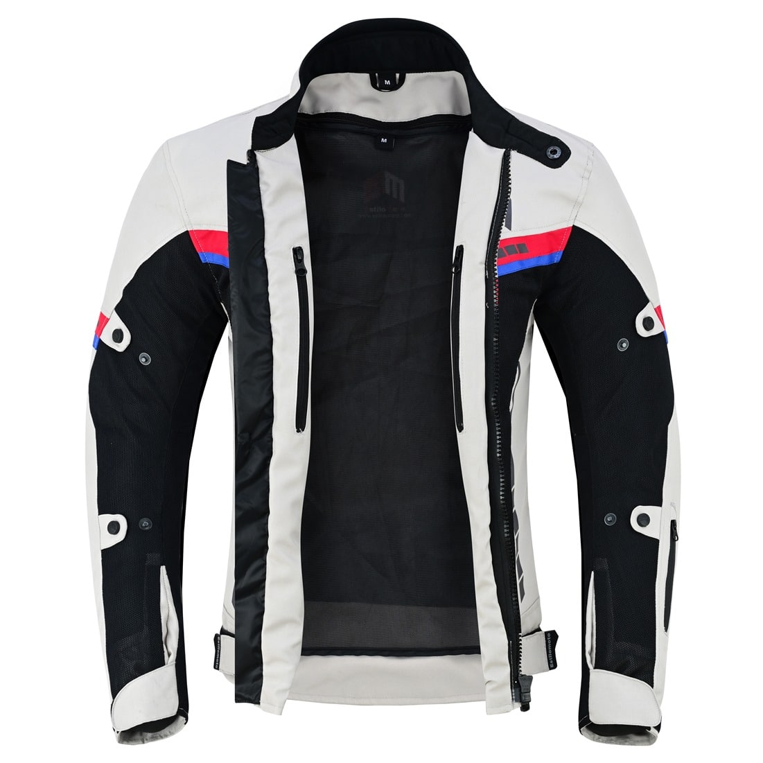 CHAQUETA DE CORDURA PARA VERANO PERFORADA CON FORRO DESMONTABLE EM366 ROJA AZUL NEGRA