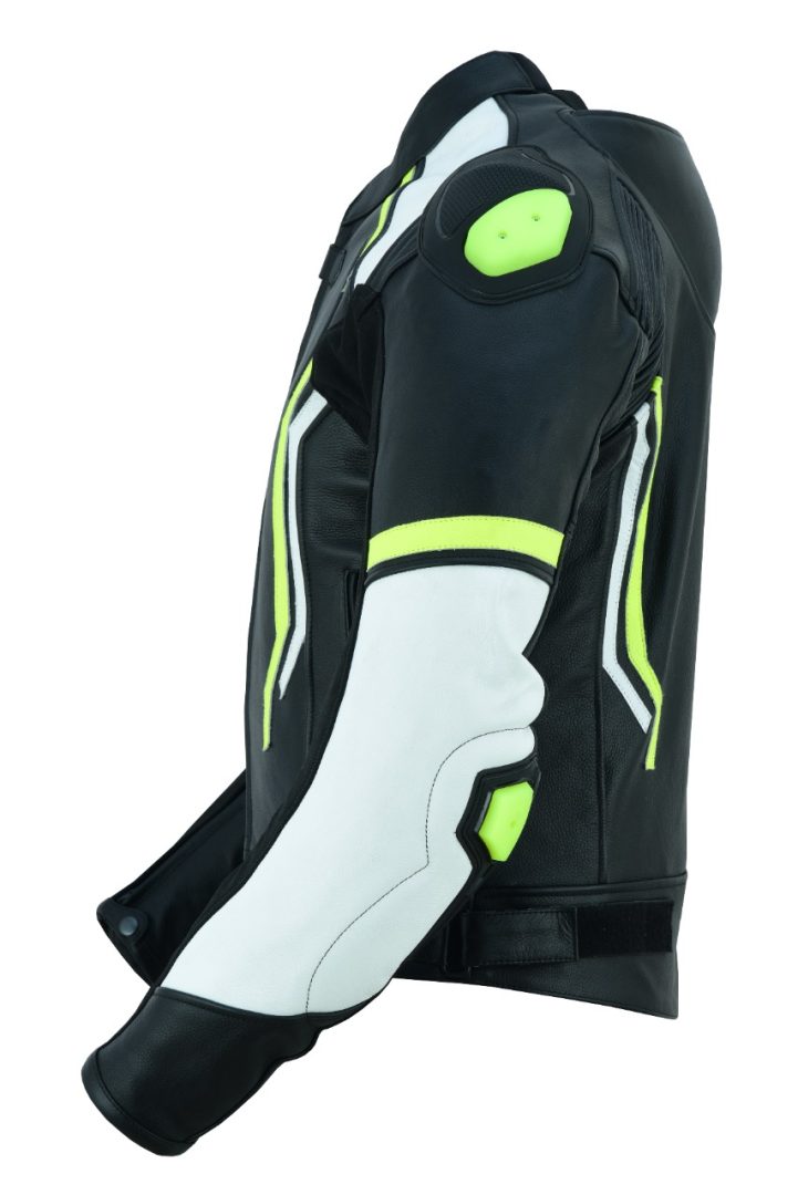 CHAQUETA DE CUERO CON PROTECTORES TPR TITANIO Y JOROBA JF17 C NEGRA BLANCA AMARILLO FLUOR