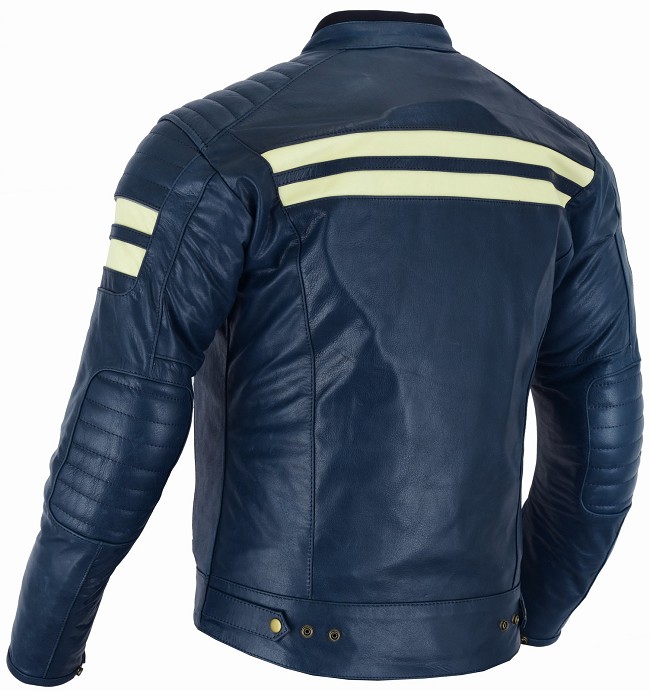 CHAQUETA DE MOTO EN CUERO ESTILO VINTAGE M CON FORRO Y PROTECCIONES CE HADES AZUL MARINO NEW