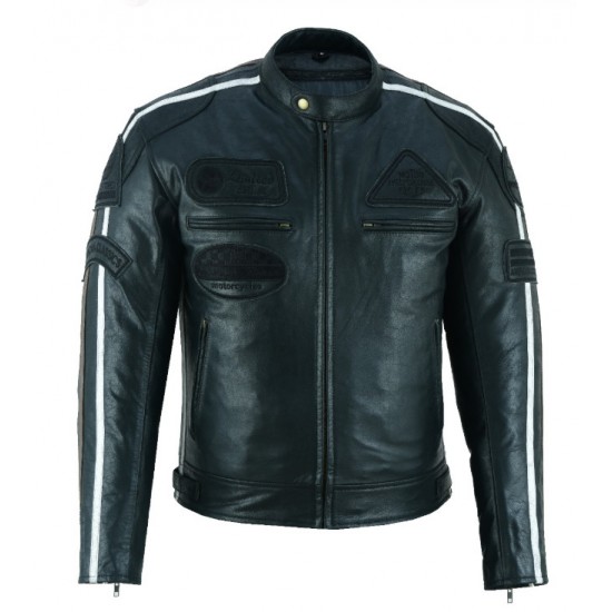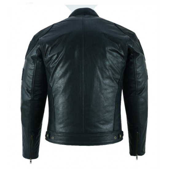CHAQUETA DE MOTO EN CUERO DEGEND CLASSIC NEGRA CON FORRO Y PROTECCIONES CE.