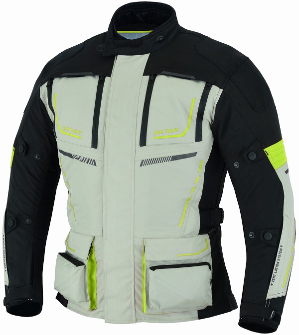 CHAQUETA DE MOTO TITAN PLATA NEGRA FLUOR 4SEASON EN CORDURA CUATRO ESTACIONES TRICAPA TIPO 3/4 CON PROTECCIONES C.E., IMPERMEABLE, UNISEX