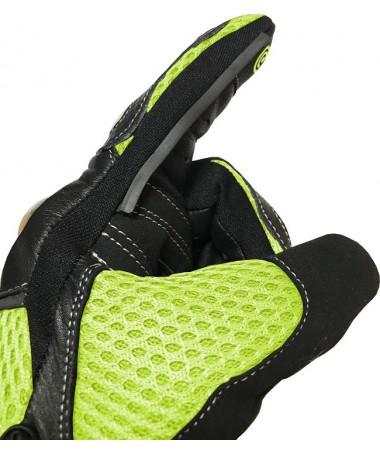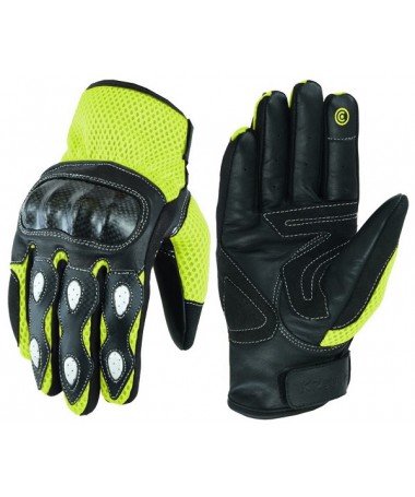 GUANTES DE VERANO PARA MOTORISTAS EN PIEL, MALLA Y FIBRA DE CARBONO 207 N/FLUOR
