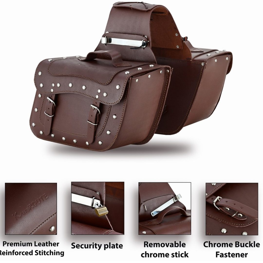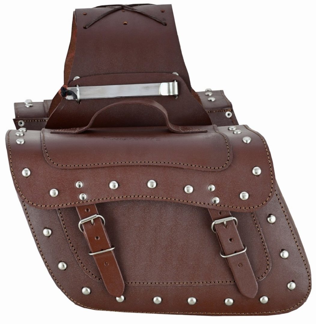 JUEGO DE ALFORJAS RÍGIDAS DE CUERO 3-4MM, PARA MOTO CUSTOM Y HARLEY BIKERS ROAD CRUISER MARRON 2 X 15 LITROS
