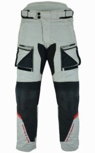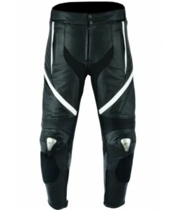 PANTALON DE CUERO PARA MOTORISTA CON PROTECCIONES DE TITANIO JF 17 P -BLANCO