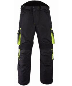 PANTALON DE MOTO EN CORDURA IMPERMEABLE TRANSPIRABLE CON PROTECCIONES CE ARES N/FLUOR