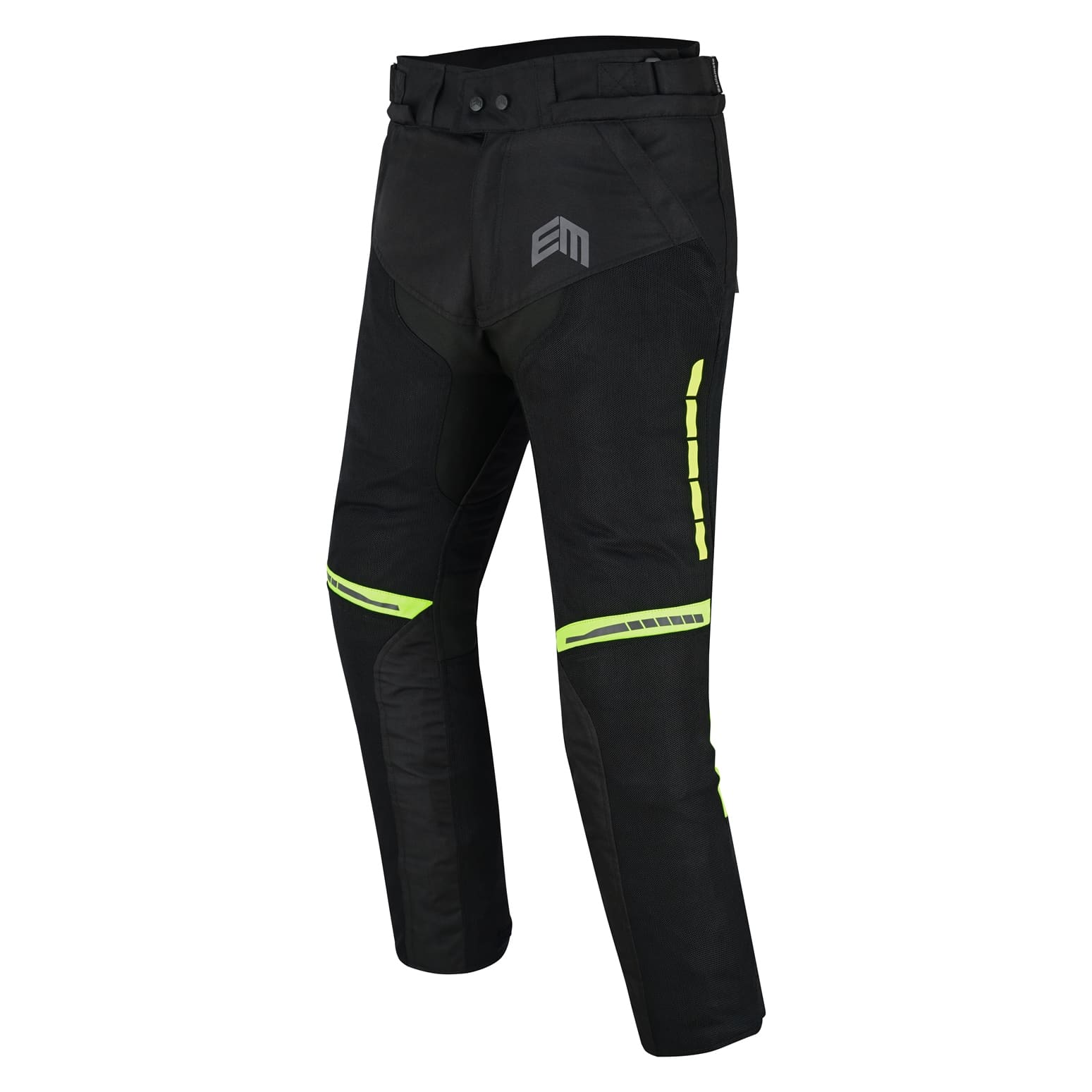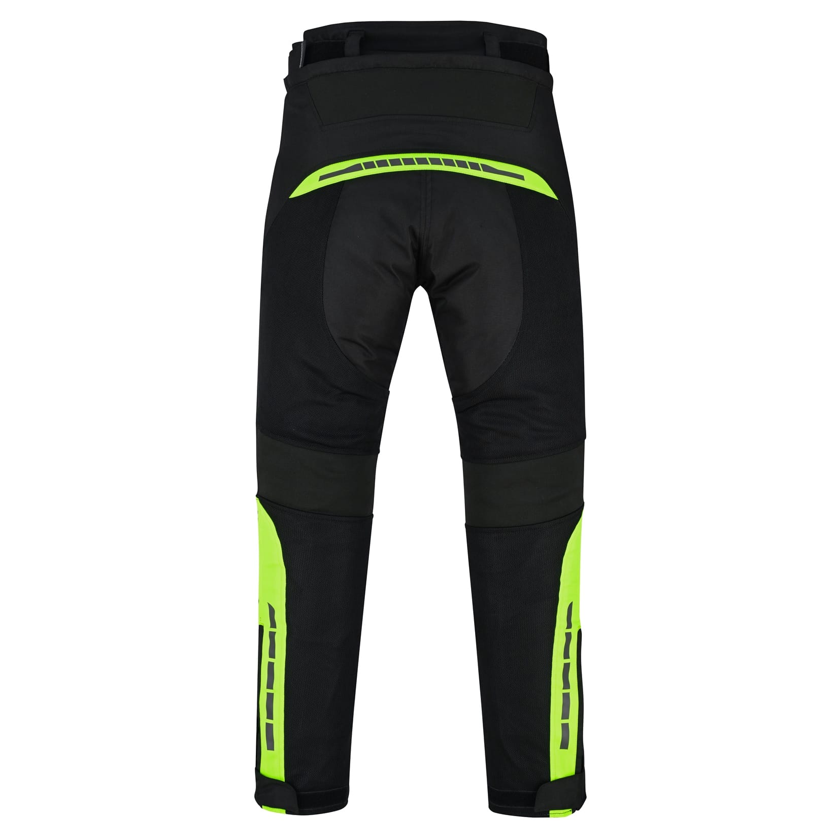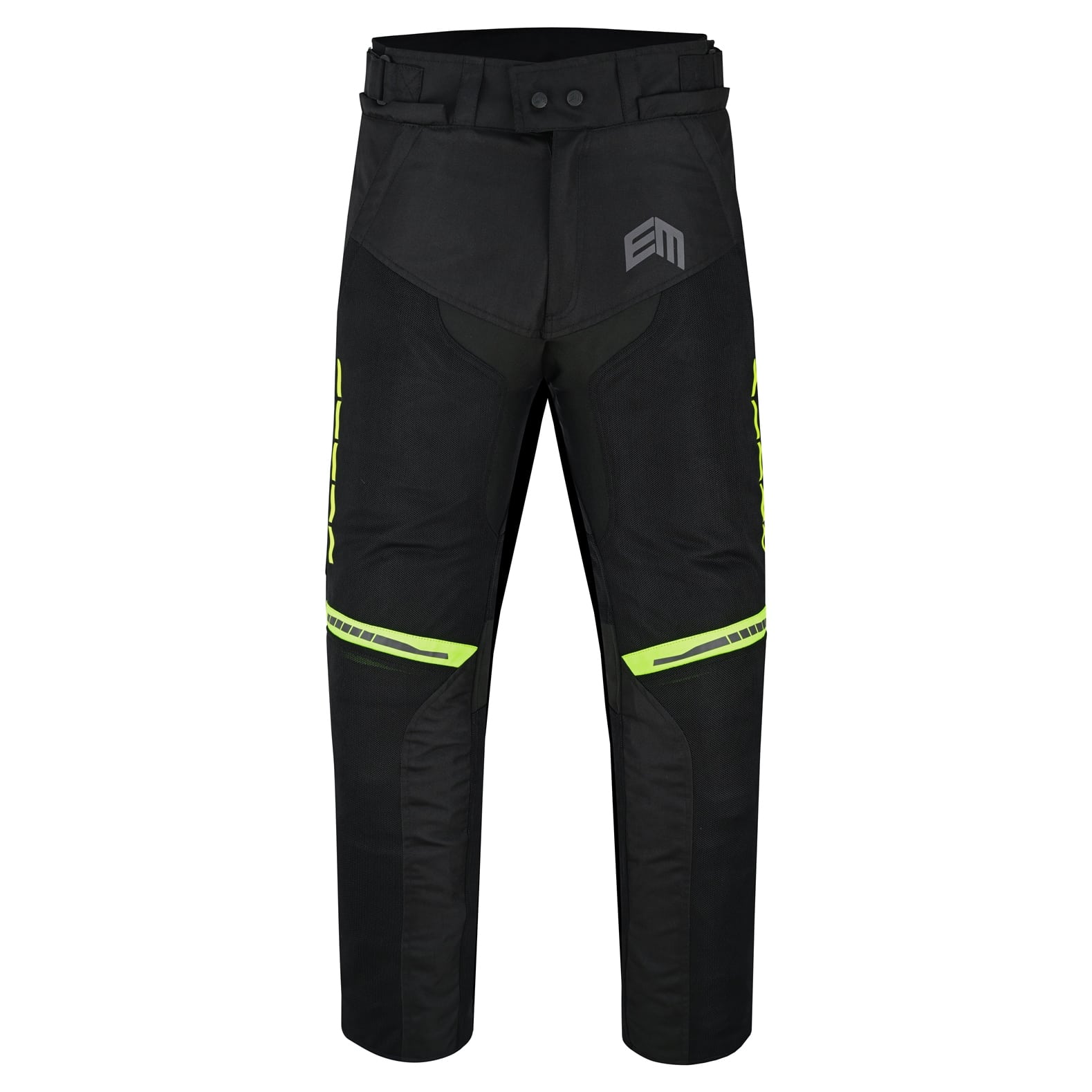 PANTALON DE MOTO PARA VERANO PERFORADO UNISEX, PROTECCIONES CE EM266 FLUOR NEGRO