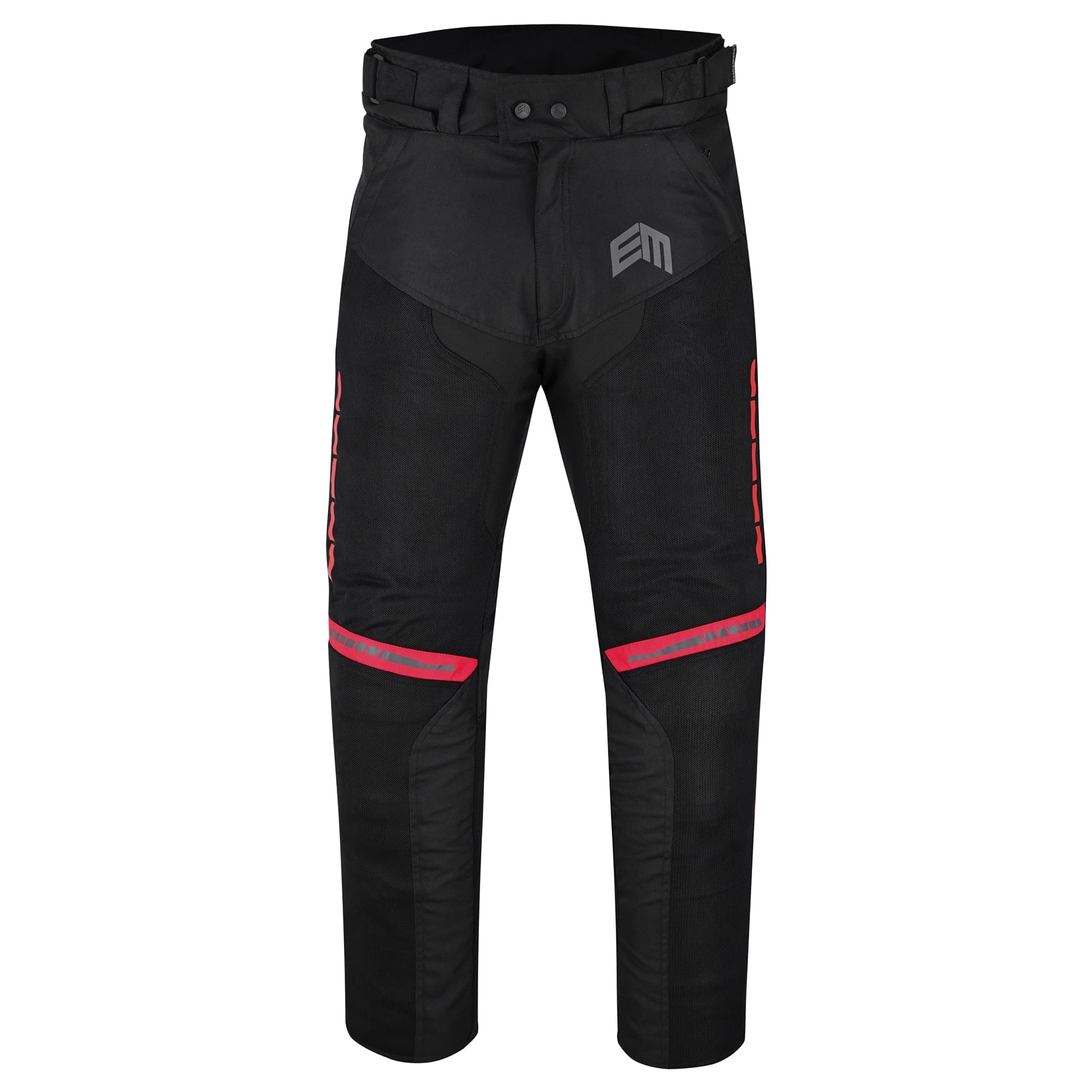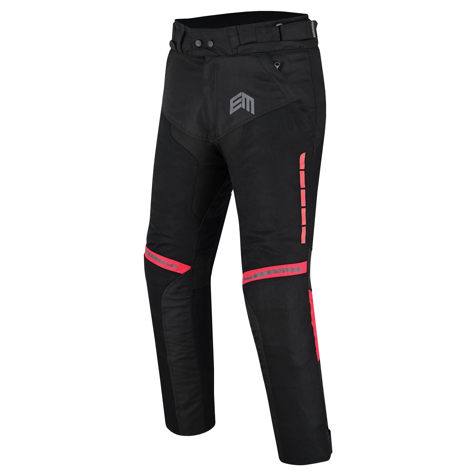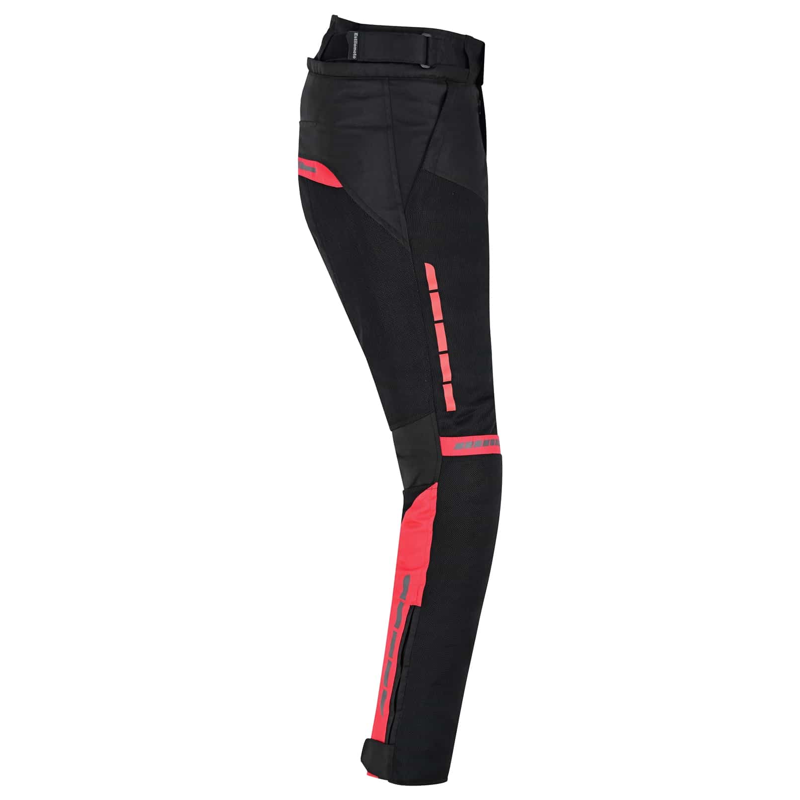 PANTALON DE MOTO PARA VERANO PERFORADO UNISEX, PROTECCIONES CE EM266 ROJO NEGRO