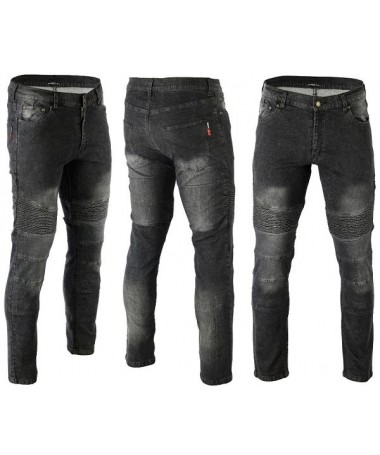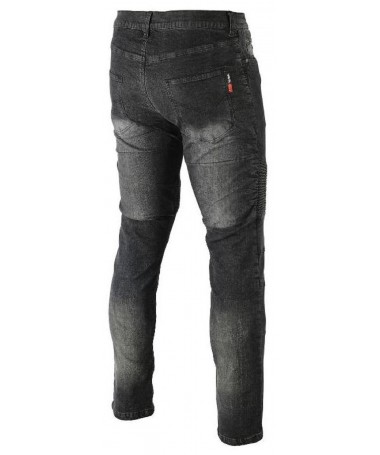 Pantalón vaquero con Kewlar de alta resistencia y protecciones en caderas y rodillas con tejido 100% algodón, lo que hace que sea muy cómodo y suave. negro desgastado