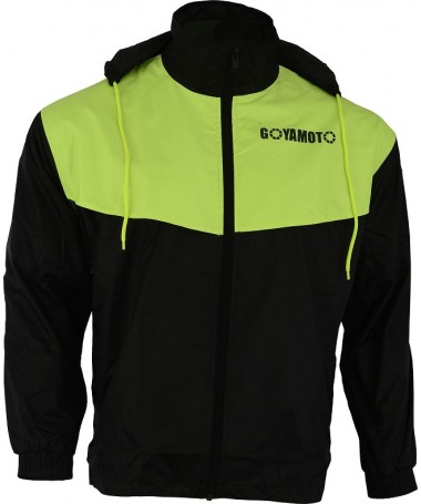 TRAJE DE LLUVIA IMPERMEABLE CON CAPUCHA, HI VIS REFLECTANTE EN DOS PIEZAS NEGRO FLUOR