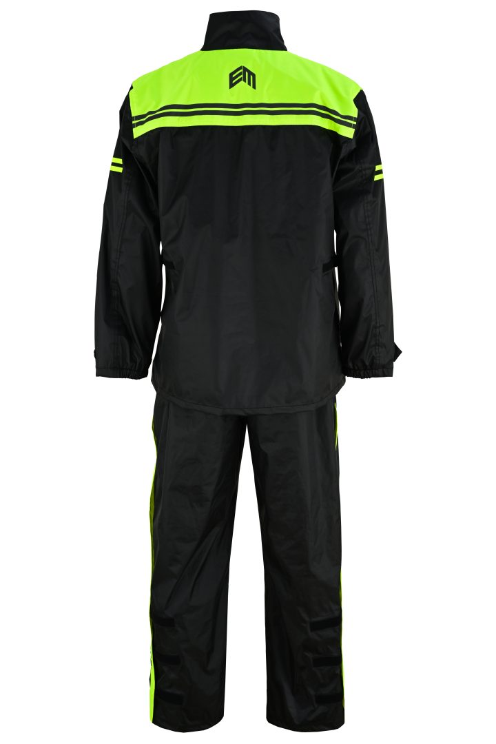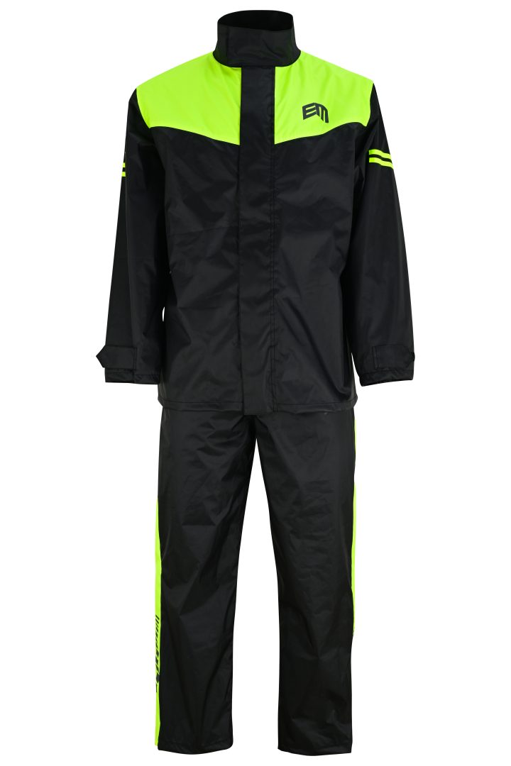 TRAJE DE LLUVIA MONSOON FLUOR NEGRO CHAQUETA Y PANTALON CHUBASQUERO IMPERMEABLE DE MOTO EN DOS PIEZAS ESTILO