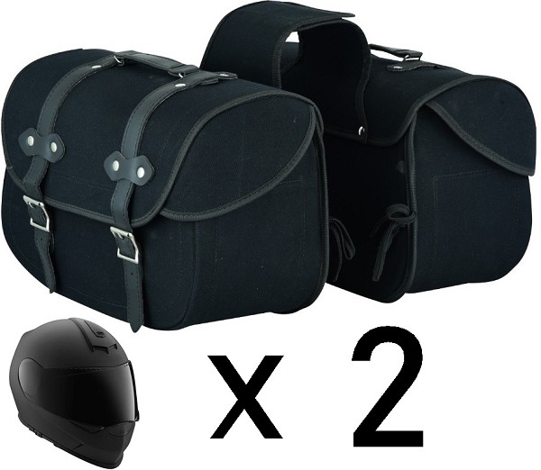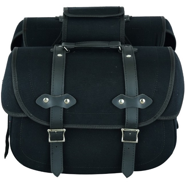 ALFORJAS VINTAGE DE MOTO LATERALES RIGIDAS, REFORZADAS DE LONA CANVAS CAFE RACER NEGRO